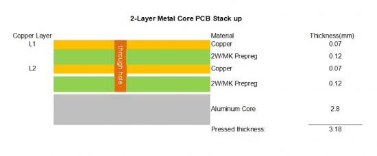 2-layer Metal Core PCB stackup: